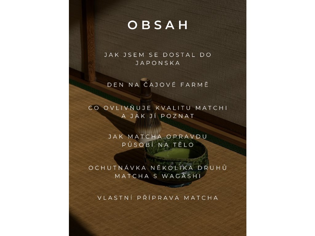 - Všechny pomůcky pro přípravu matchy budou k dispozici